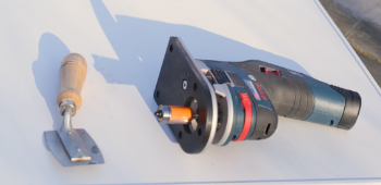 Mit der Furniersäge und dem Kantenfräser machten wir die besten Erfahrungen. Der akkubetriebene Kantenfräser ist beim Schneiden von 2,4 mm Furnier sehr gut zu gebrauchen.